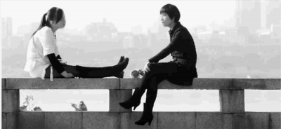 11月17日,長(zhǎng)沙市湘江中路,兩位市民坐在江邊欄桿上聊天曬太陽(yáng)。實(shí)習(xí)生何佳樂(lè)攝