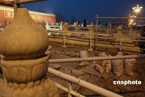 北京天安門金水橋開始加固修繕(圖)