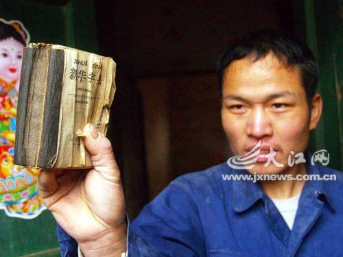 這位“字典奇人”叫李克軍,信州區(qū)朝陽鄉(xiāng)王村人,今年37歲,文化程度僅是初中畢業(yè),是一名農(nóng)民工。