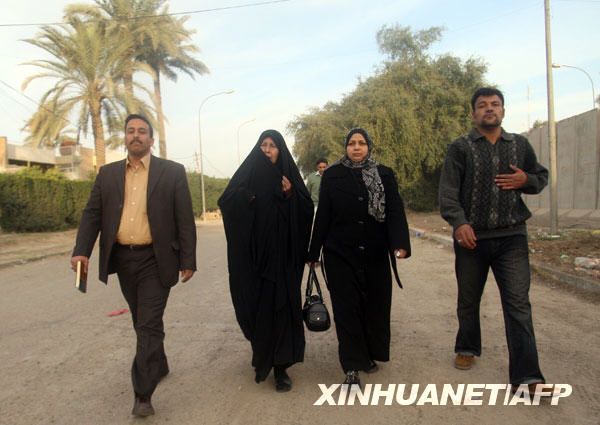 2月19日,在伊拉克首都巴格達,被捕的伊拉克記者蒙塔茲·扎伊迪的家人前往法庭。