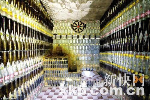 連寺里的衛(wèi)生間也用啤酒瓶修建。