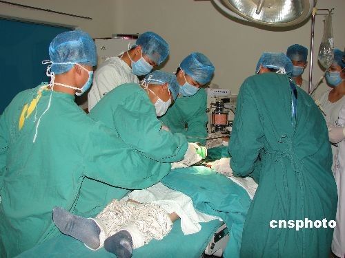 廣西玉林市玉州消防大隊(duì)名山中隊(duì)6名官兵,在玉林市紅十字會(huì)醫(yī)院為一老漢破拆緊套在“命根”上的小鋼圈。中新社發(fā) 黃浩 攝