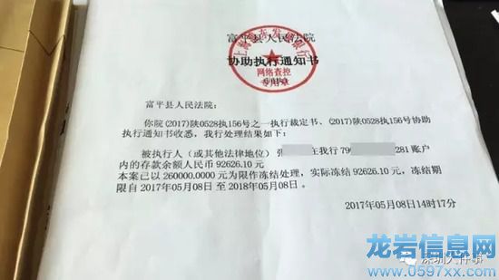 這時,銀行的工作人員才通過系統(tǒng)查實他的賬號已被富平縣人民法院凍結(jié)了,不但賬號內(nèi)的存款無法支取,還倒欠了16萬多。