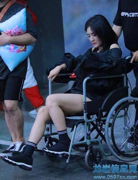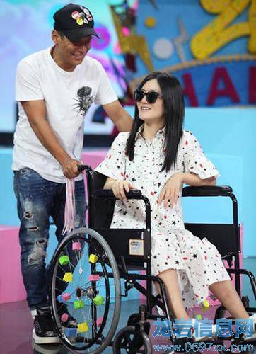 謝娜坐輪椅表情痛苦。