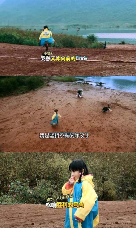 在Cindy放鳥(niǎo)過(guò)程中,她堅(jiān)持到底的精神一度感染了其他的小伙伴,他們也參與進(jìn)來(lái)幫助Cindy一起放飛,可調(diào)皮的鳥(niǎo)兒竟然跟他們玩起了捉迷藏,它帶著Cindy跑遍了整個(gè)飼養(yǎng)場(chǎng)地,任憑Cindy多么熱情的呼喚,它就是不飛。途中,幫忙的兩位小朋友也沒(méi)能堅(jiān)持下來(lái),只留下Cindy一個(gè)人不僅要跟著鳥(niǎo)兒不停地奔跑,還要一邊呼喚著起飛的口號(hào)。在Cindy貫穿始終的堅(jiān)持下,淘氣的鳥(niǎo)兒終于展翅高飛了?粗鴿M場(chǎng)飛奔追鳥(niǎo)兒的Cindy,大家不禁調(diào)侃Cindy這是要變身成追鳥(niǎo)女漢子的節(jié)奏嗎?